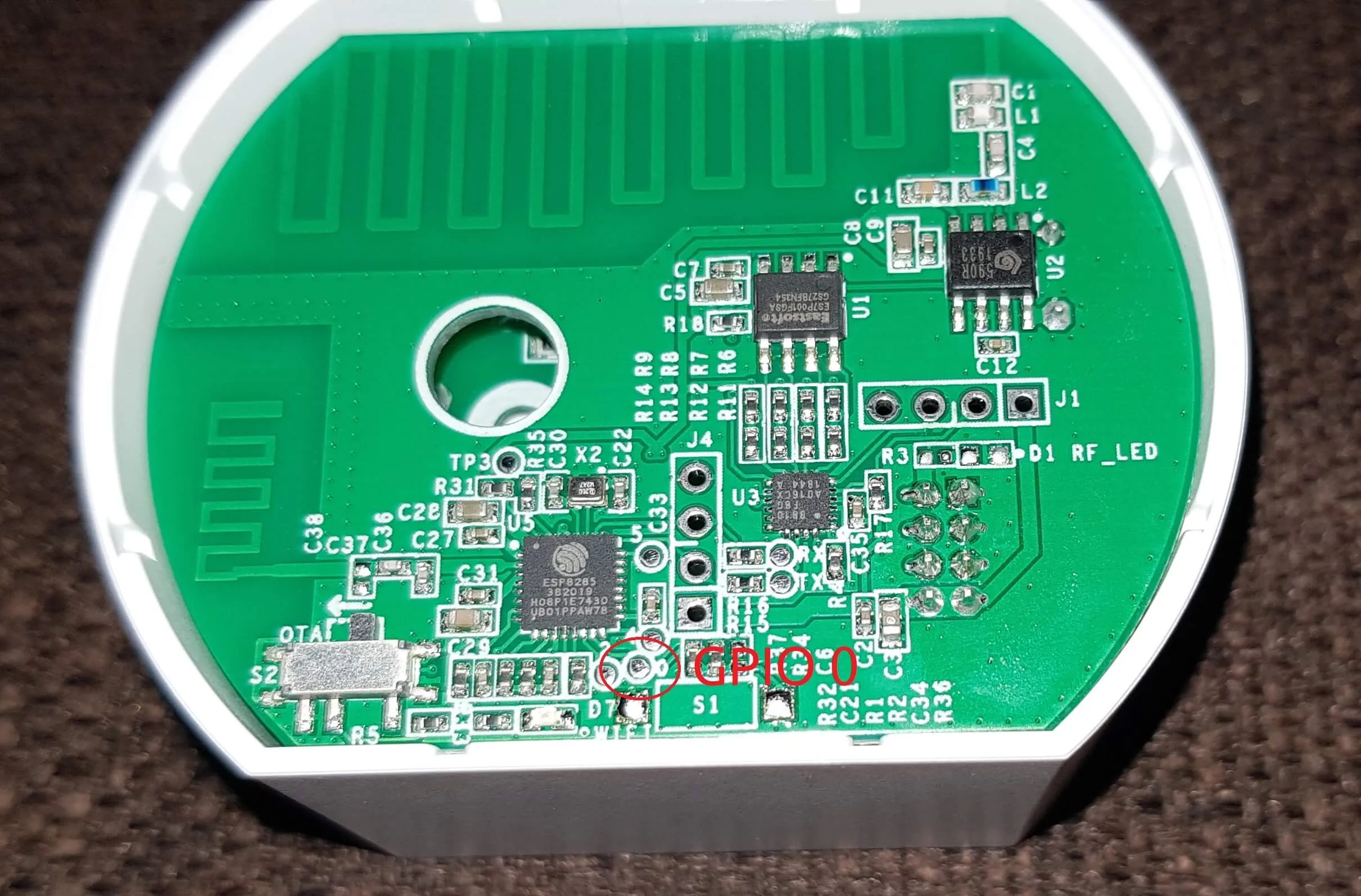 To replace the stock firmware with ESPHome you will need to locate GPIO0 pin and serial port. Photos below should help.